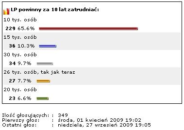 Ponad 65 proc. głosujących uznało, że 10 tys. osób to właściwa wielkośc zatrudnienia w LP.