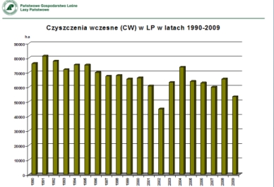 W 2009 r. LP wykonały odnowienia i zalesienia na ok. 50 tys. ha, CP na ponad 60 tys. ha, TW na ok. 120 tys. ha a CW na ponad 50 tys. ha.