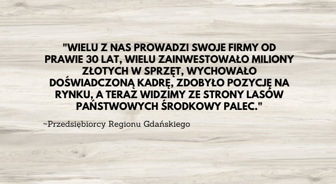 Już 70 przedsiębiorców leśnych z terenu RDLP w Gdańsku podpisało się pod apelem do Bartłomieja Obajtka, dyrektora tej dyrekcji. Oto treść apelu z dnia 12 stycznia br.: