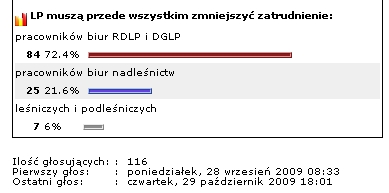 Tylko 6 proc. głosów oddano za rozwiązaniem, w którym to leśniczowie i podleśniczowie powinni przede wszystkim podlegać redukcjom.