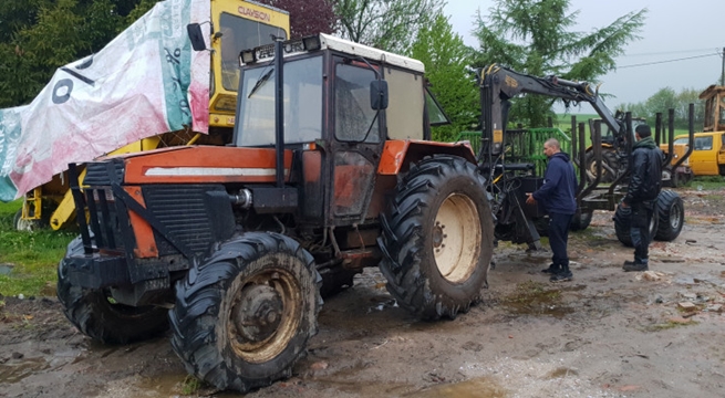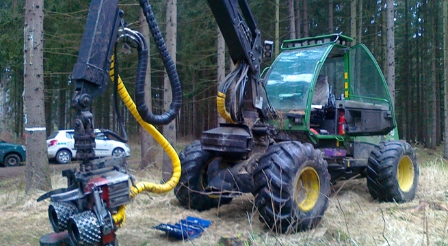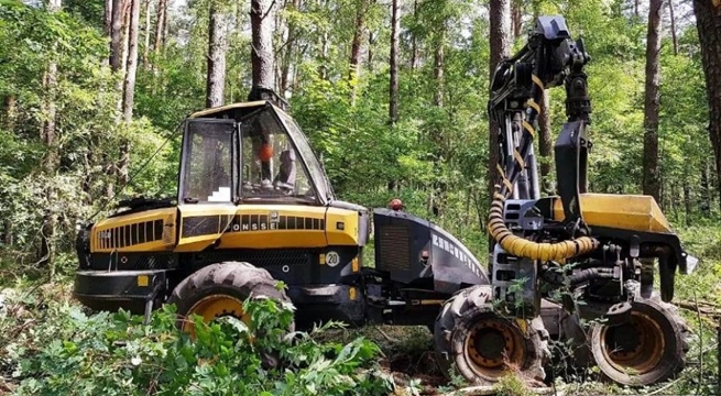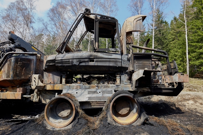Wandal niszczy maszyny leśne