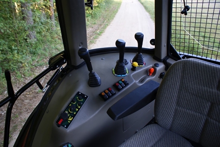 Leśny ciągnik wyposażono w komplet osłon zabezpieczających podwozie ciągnika, osłonę szyby tylnej kabiny, relingi dachowe, dodatkowy układ jazdy do tyłu (traktor rewers) oraz obrotowe siedzisko operatora. Kabina operatora jest ogrzewana i klimatyzowana (opcja).