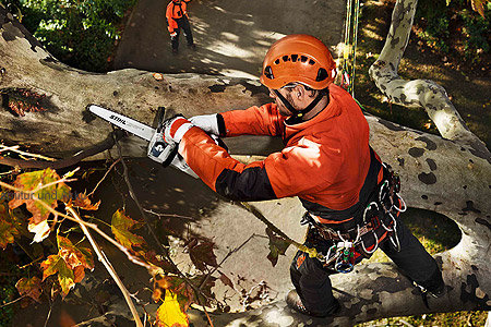 Wyższa, lżejsza, cichsza: wygodne STIHL MSA 160 T akumulatorowa pilarka i specjalny łańcuch wyznaczają nowe standardy w dziedzinie profesjonalnego utrzymania drzewa.