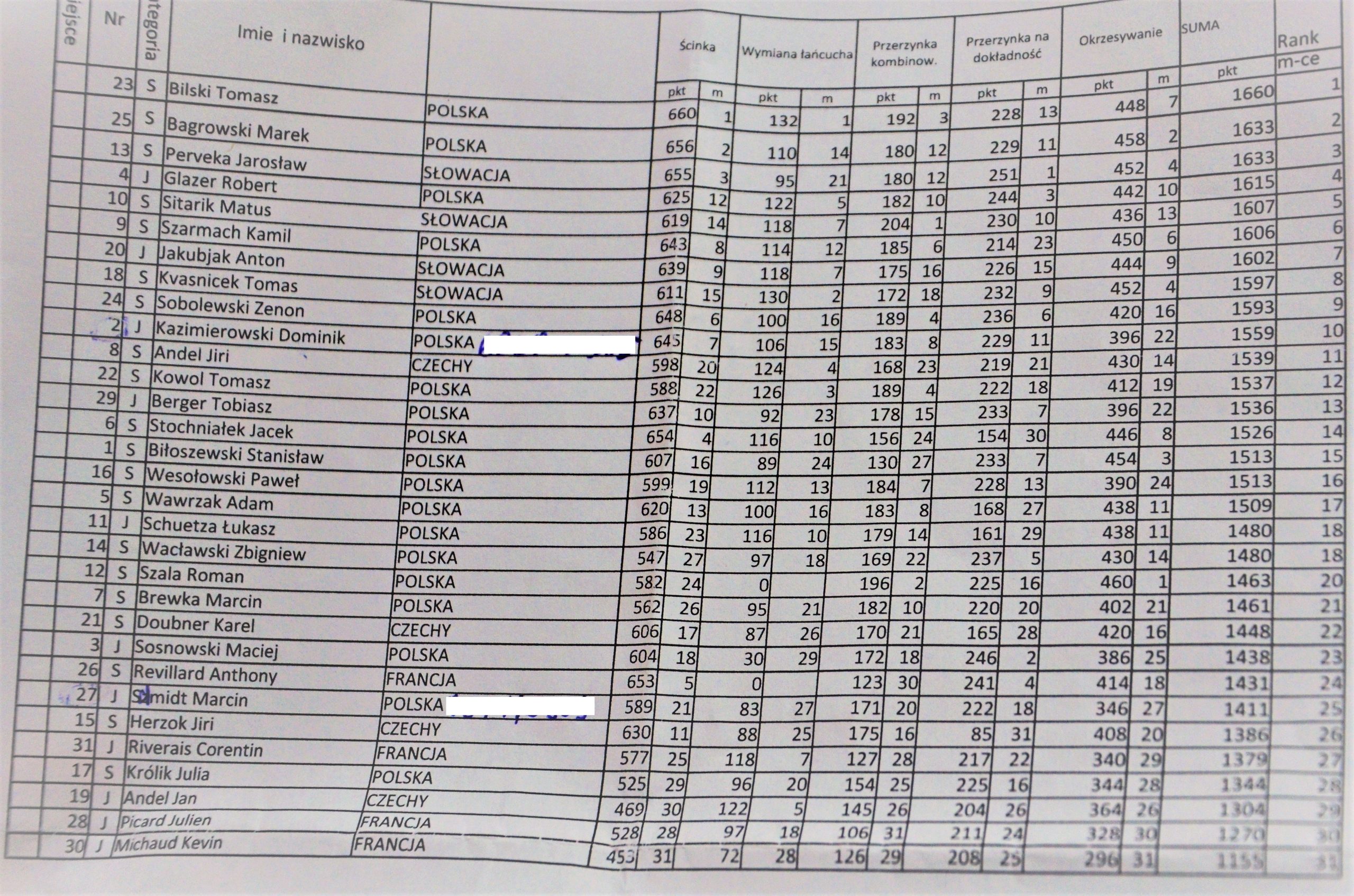 W rywalizacji seniorów zawody wygrał Tomasz Bilski (1660 pkt), drugi był Marek Bagrowski (1633 pkt), a trzeci Jarosław Perveka ze Słowacji (też 1633 pkt, ale gorszy wynik w ścince). Wśród juniorów pierwszy był Robert Glazer (1615 pkt), drugi Anton Jakubiak ze Słowacji (1602 pkt), a trzeci Dominik Kazimierowski (1559 pkt). W zawodach startowało 31 zawodników.