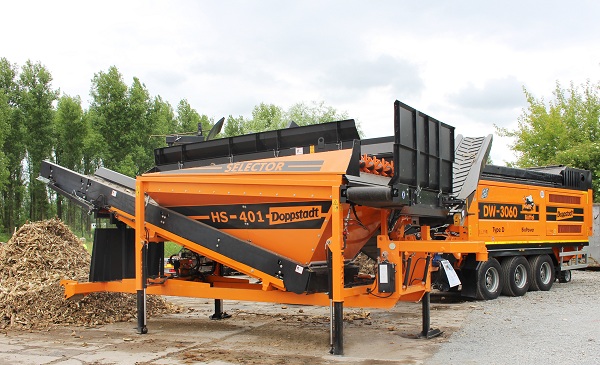 W październiku firma Doppstadt stworzyła nowy przesiewacz, który odseparuje nadgabarytową frakcję z każdego materiału. Maszyna nosi nazwę HS 401 "Selector" i doskonale sprawdza się w połączeniu z rozdrabniaczem wstępnym DW 3060 typu F. Cały układ jest zwarty i wydajny, zarówno czasowo jak energetycznie. Rozdrabniany materiał jest doprowadzany do stanu jednorodnej frakcji o wielkości ziaren 0 do 300 mm. Do gardzieli maszyny można wprowadzać odpady drewniane i biomasę wszelkiego typu. Po przejściu pierwszego cyklu rozdrabniania, przesiewacz oddziela niechciane elementy i przy pomocy taśmociągu zwraca je do ponownego rozdrabniania.