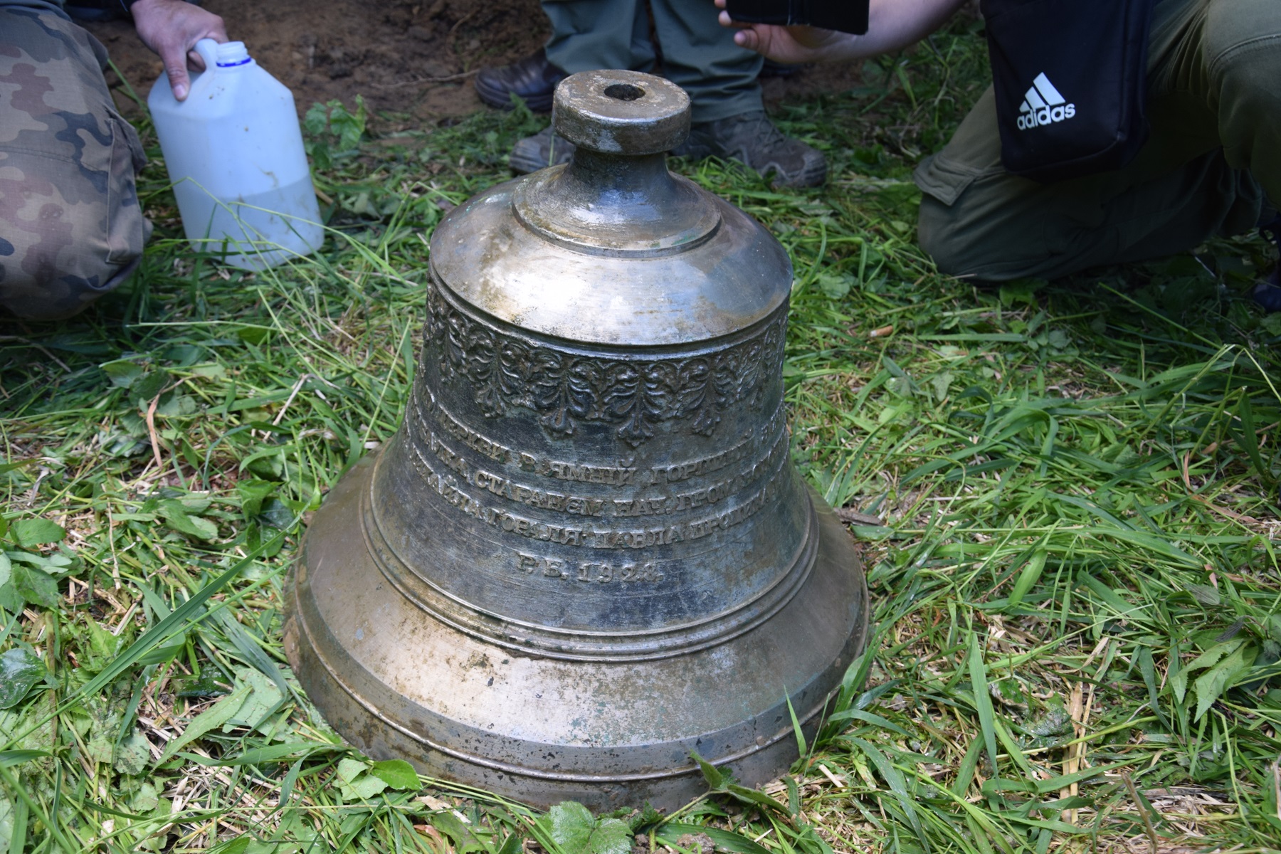 - Świątynia istniała do 1956 roku i była zlokalizowana w odległości około 300 metrów od miejsca odkrycia, stąd domniemanie, że dzwon pochodzi właśnie z tego obiektu – wyjaśniał nadleśniczy Kwiatkowski - Z dedykacji wypisanej cyrylicą na płaszczu dzwonu wynika, że został on ufundowany w 1928 roku.