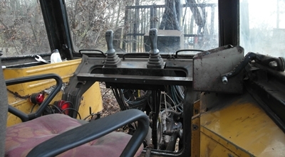 W ciągniku zamontowano fotel obrotowy własnej konstrukcji. Zrobiono to najprościej jak można: po prostu wstawiono do kabiny fotel biurowy...