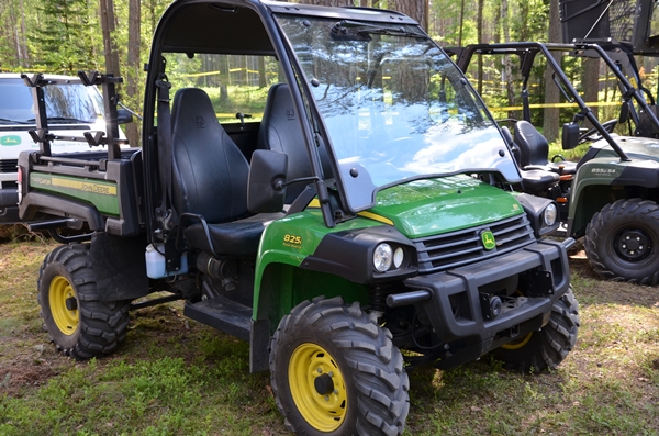 A teraz coś naprawdę szybkiego. Mały zielono-żółty, zwinny Gator XUV 825i to model dwuosobowy. Pojemność skokowa trzycylindowego, chłodzonego cieczą silnika benzynowego wynosi 812 m?, a jego moc to 37 kW (50 KM). Silnik ten należy do klasy silników samochodowych ? wykorzystuje elektroniczny wtrysk paliwa, co ułatwia rozruch, a przekładnia bezstopniowa CVT pozwala uzyskać płynniejszą jazdę, przypominającą jazdę samochodem. Maksymalna prędkość pojazdu to 70 km/h.