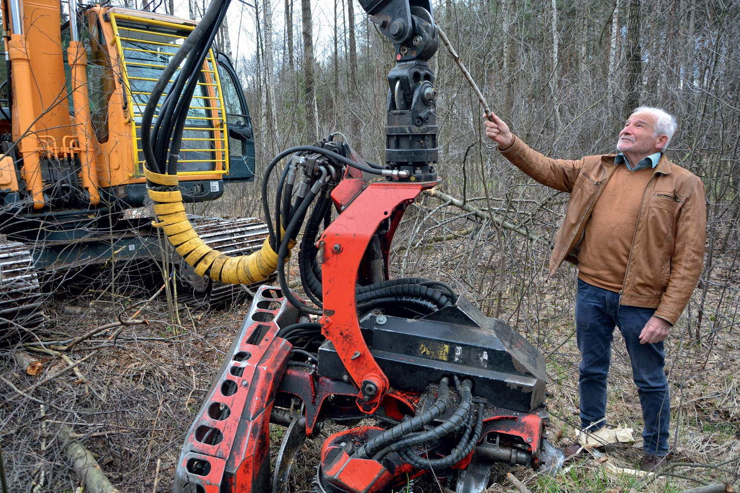 "Od jednej z firm produkujących głowice harwesterowe powzięliśmy informację, że około 60 procent produkowanych przez nich głowic jest montowane na koparkach. Koparka jest dużo tańszą maszyną, skonfigurowaliśmy ją z głowicą SP Maskiner i tak powstała nasza wersja harwestera trzebieżowo-zrębowego. Chciałem tym pokazać jakąś drogę kolegom przedsiębiorcom, jak