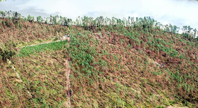 9,8 mln m3 powalonych i połamanych drzew, 79,7 tys. ha uszkodzonych lasów, w tym 39,2 tys. ha do całkowitego odnowienia. To skutek nawałnic, które w nocy z 11 na 12 sierpnia 2017 r. spustoszyły lasy w kilkudziesięciu nadleśnictwach, głównie na Pomorzu i Kujawach.