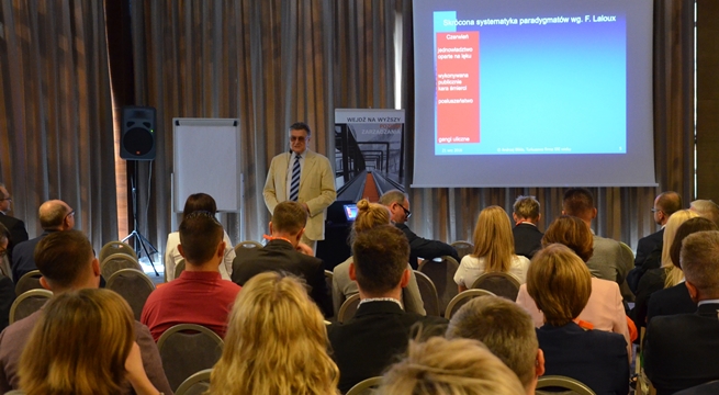 ? Ludzie wolni i szczęśliwi pracują lepiej. Ludzie uskrzydleni góry przenoszą. I nie trzeba ich przy tym pilnować ? przekonywał w inauguracyjnym wystąpieniu prof. Andrzej Jacek Blikle, znany szeroko bardziej z produkcji pączków, a będący od lat piewcą nowoczesnego zarządzania w Polsce.