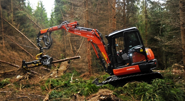 Na minikoparce Kubota z gumowymi lub stalowymi gąsienicami z ponad sześciometrowym żurawiem zamontować można głowicę ścianająco-okrzesująco Arbro. Jej ciężar bez oleju to 300 kg. Może ścinać drzewa o maksymalnej średnicy do 40 cm. Skok posuwu jest automatyczny ? 75 cm. Głowica ta z całym układem sterującym, czyli komputerem, przewodami, joystickami, może być zamontowana również na żurawiach montowanych na ciągnikach rolniczych.