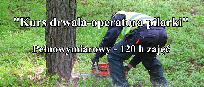 Pełnowymiarowy (120 godzin zajęć) "Kurs drwala ? operatora pilarki? jest propozycją dla osób chcących nabyć pełne uprawnienia do wykonywania zawodu drwala- operatora pilarki (pracownicy Zakładów Usług Leśnych, osoby bezrobotne, absolwenci techników i studiów leśnych).