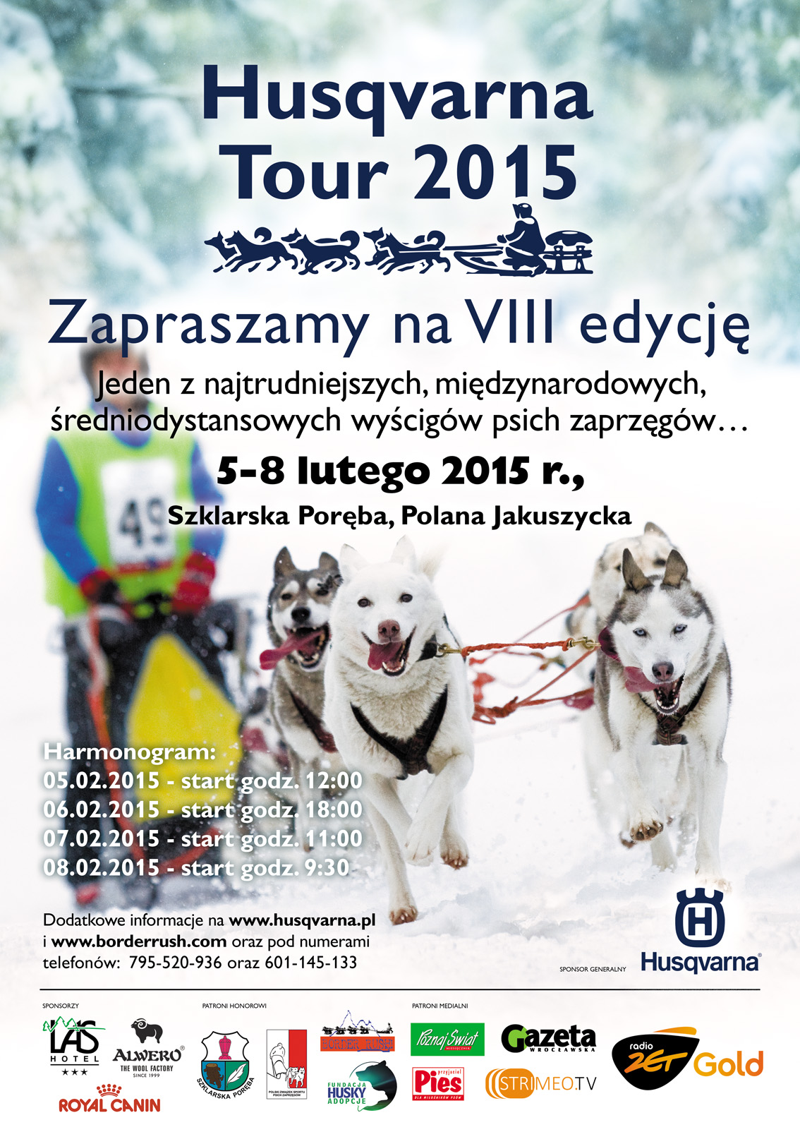 W dniach 5 - 8 lutego na Polanie Jakuszyckiej odbędzie się VIII edycja wyścigu psich zaprzęgów -  Husqvarna Tour 2015. To największa w Polsce gonitwa i jedna z najważniejszych na świecie.