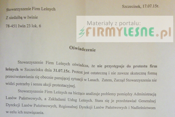 Tymczasem inne firmy (te ze Stowarzyszenia Firm Leśnych) tego protestu nie popierają, uważając, że trzeba jeszcze rozmawiać, a nie protestować.