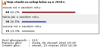 60 proc. uczestników naszej sondy ma w 2010 r. niższe stawki na usługi leśne niż rok wcześniej.
