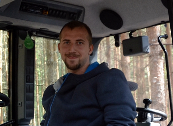 Od czterech lat jestem operatorem ciągnika. Podoba mi się to co robię. Lubię pracę w lesie. Skończyłem technikum informatyczne, ale na studiach, na Uniwersytecie Zielonogórskim wybrałem kierunek: mechanika i budowa maszyn ? został mi jeszcze jeden rok. Praca w lesie jest ciekawsza niż praca informatyka, dlatego idę w kierunku maszyn i lasu.