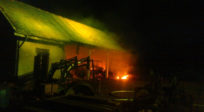 Około godz. 2.00 zauważono ogień w budynkach gospodarczych. Spłonął m.in. garaż w którym stały trzy ciągniki, dwie wciągarki oraz przyczepa z żurawiem do zrywki drewna. Ogień strawił również kurnik oraz zapas słomy.