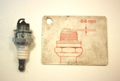 (o kształcie fajki) i wykręcić ją z cylindra. Świeca zdatna do użycia ma czyste elektrody i posiada dokładnie określoną odległość elektrody bocznej od elektrody centralnej ? zazwyczaj jest to 0,5mm. Ewentualne naloty z elektrod usuwamy za pomocą szczotki drucianej. W celu sprawdzenia wielkości szczeliny między elektrodami używamy szczelinomierza Powinien on idealnie pasować do przerwy między elektrodami.