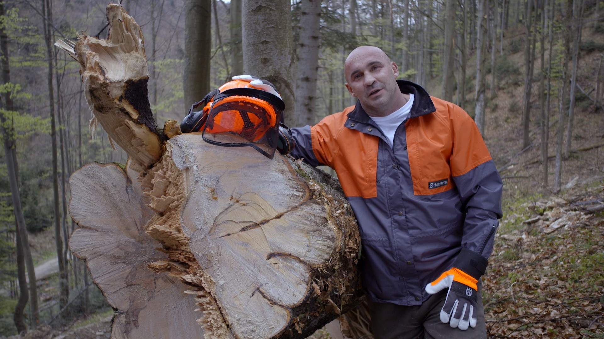 Sam bohater przyznał, że ta praca nie jest łatwa, trzeba na wiele rzeczy uważać w tym samym czasie, a w dodatku na ziemi leż masa liści bukowych i jest ślisko.