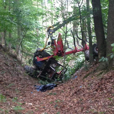 Przewrócony ciągnik z przyczepą - Firmy Leśne
