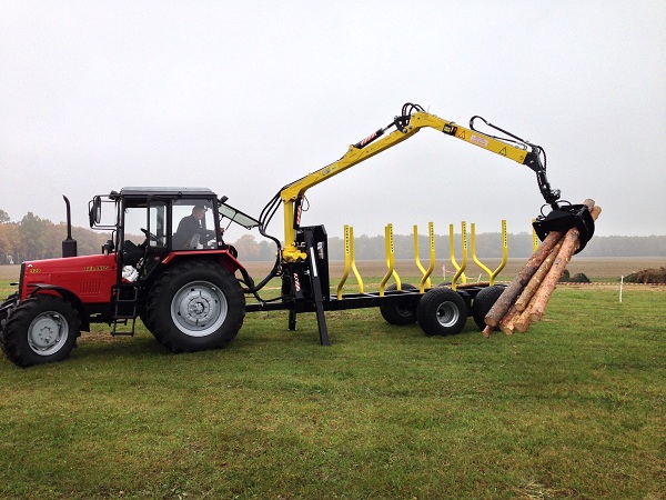 Będziemy mogli zobaczyć MTZ z zabudową leśną, a także przyczepę do zrywki HYDROFAST H11 z żurawiem i chwytaki zrywkowe. Przyczepa ma ładowność 11 ton, a żuraw (HFL) wysięg 6,3 m.