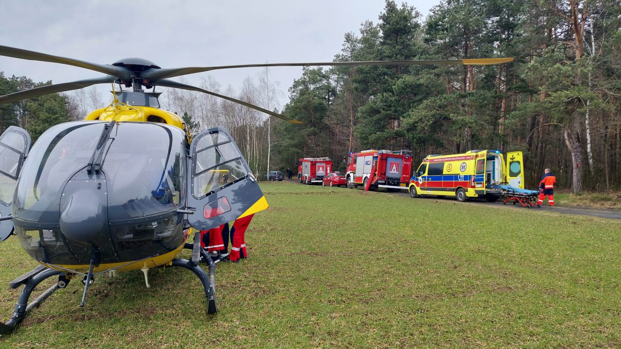 Poszkodowanego z rozległymi obrażeniami przetransportowano do szpitala śmigłowcem.