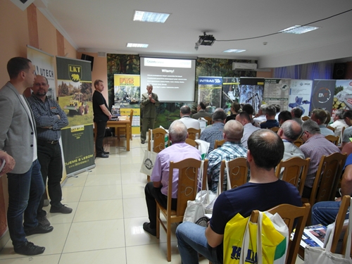 Tego dnia upał doskwierał. Nie przeszkodził jednak w przebiegu imprezy: wykłady na sali konferencyjnej; prezentacja maszyn przed salą konferencyjną, a także pokaz pracy maszyn na specjalnie przygotowanym terenie w lesie.