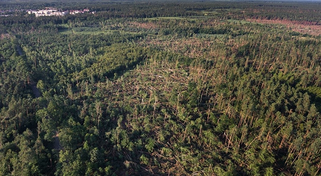 Jak podaje portal drewno.pl powołując się na Lasy Państwowe zniszczonych zostało ok. 2000 ha lasu, z czego 700 ha huragan zniszczył doszczętnie, a 1300 ha zostało uszkodzonych częściowo. Szacowana ilość drewna poklęskowego to ok. 265 tys m3.