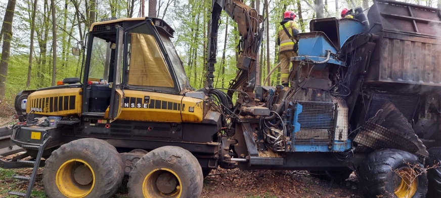 W lesie pod Iławą doszło do pożaru rębaka, właściciel szacuje potężne straty pieniężne.