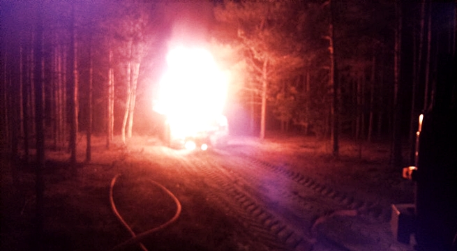 Nad ranem 9 grudnia strażacy z OSP Bobrowice otrzymali zgłoszenie do płonącej maszyny. Okazał się nią harwester.