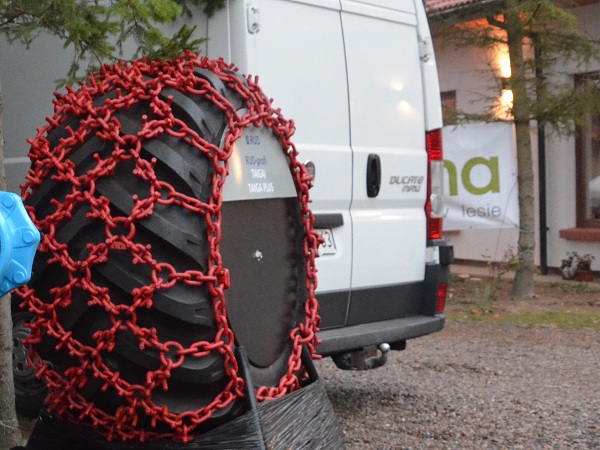 Do maszyn leśnych dobrze nadają się na przykład łańcuchy Interforst. Są proste do założenia i zdjęcia, a rozmiar można dopasować do każdego koła. Ponadto mają dobre właściwości samoczyszczące i można je wyposażyć w dodatkowe ogniwa trakcyjne.