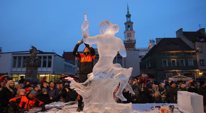 Artyści posługując się dłutami, szlifierkami i piłami elektrycznymi zmienili bryły lodu w prawdziwe dzieła sztuki.