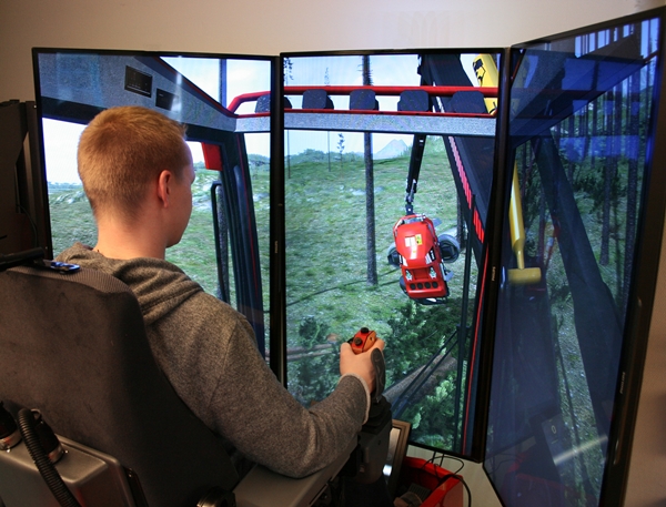 w krajach skandynawskich przyszli operatorzy maszyn leśnych podczas nauki w szkołach często korzystają z symulatorów. Jest to dobre przygotowanie do pracy z prawdziwymi maszynami leśnymi.