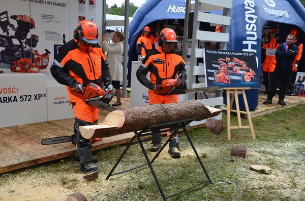 Maszyny są prezentowane stacjonarnie, czasem jakaś porusza żurawiem. Są za to np. po raz pierwszy widziane na targach leśnych w Rogowie stoiska firm zajmujących się np. budownictwem drewnianym. Są też pokazy rzeżbienia pilarką.