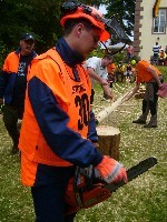 - Zmiana łańcucha tnącego ? Zadaniem uczestnika jest zdjęcie oraz założenie łańcucha, przykręcenie prowadnicy oraz prawidłowe naciągnięcie łańcucha tak - aby pilarka była gotowa do kolejnej konkurencji.