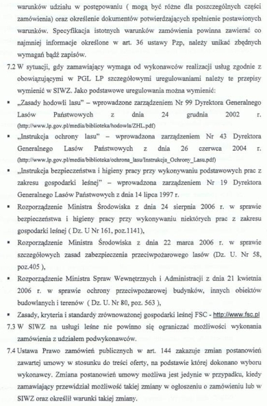7.2 W sytuacji, gdy zamawiający wymaga od wykonawców realizacji usług zgodnie z obowiązującymi w PGL LP szczegółowymi uregulowaniami należy te przepisy wymienić w SIWZ. Jako podstawowe uregulowania można wymienić: