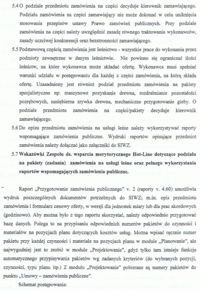 5.6 Do opisu przedmiotu zamówienia na usługi leśne należy wykorzystywać raporty wspomagające zamówienia publiczne. Wydruki raportów opisujące przedmiot zamówienia należy dołączać jako załączniki do SIWZ.