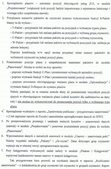 1. Sporządzenie planów? założenie pozycji dotyczących usług ZUL w module ?Projektowanie" (większość tych pozycji będzie importowana z rejestratora leśniczego i wymaga tylko uzupełnienia stawek).