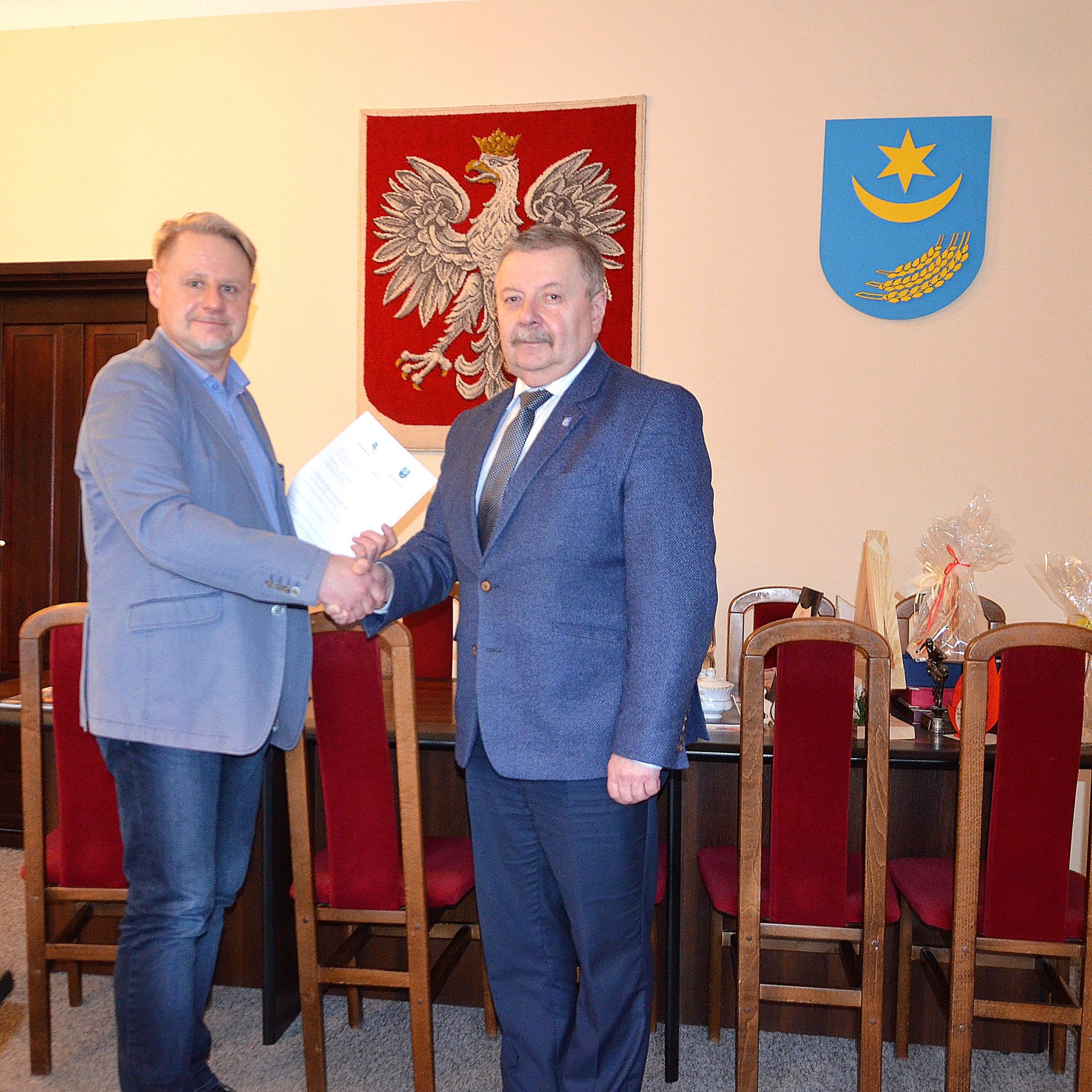 Na zdjęciu od lewej: Rafał Jajor, prezes wydawnictwa Lasmedia oraz Marek Rączka, Wójt Gminy Żyraków
