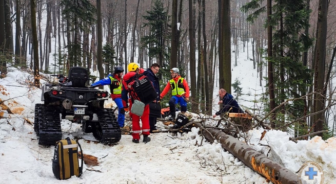 Ratownicy po przybyciu na miejsce zastali nieprzytomnego mężczyznę przygniecionego konarem drzewa.