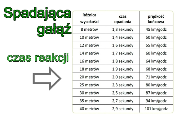Dlaczego drwale powinni nosić kaski na powierzchni roboczej? Chociażby dlatego, że przypadkowo oderwana gałąź, spadająca z wysokości kilkunastu czy kilkudziesięciu metrów nabiera niesamowitej prędkości!