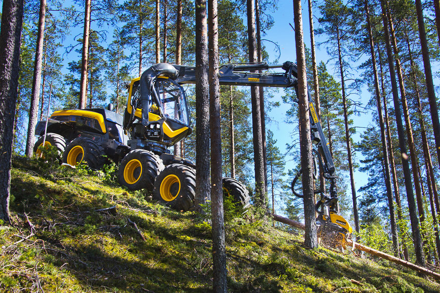 Harwester Ponsse Scorpion ? pierwszy harwester w stajni PONSSE z obrotową kabiną i żurawiem zamontowanym za nią dzięki czemu widoczność jest najlepsza i żadne dotychczasowe rozwiązanie nie dorównuje. Aktywne poziomowanie i stabilizacja zwiększa możliwości zastosowania w jeszcze trudniejszym terenie i poprawia warunki i komfort dla operatora. System komputerowy z ECLODRIVE pozwala kontrolować i optymalizować zużycie paliwa.