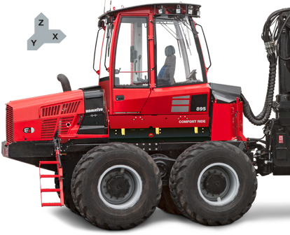 Komatsu Comfort Ride ? to unikatowy system amortyzacji kabiny forawardera, zaprojektowany tak aby efektywnie redukować, a nawet przeciwdziałać wibracjom, wstrząsom oraz przechyłom maszyny w ciężkim terenie. Jest to niespotykany w innych maszynach leśnych sposób na podniesienie komfortu, bezpieczeństwa i wydajności pracy operatora.