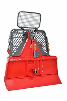 Wyciągarka leśna KRPAN 9,5 EH ? nowoczesne i innowacyjne zdalne regulowanie bloczka dolnego w celu obniżenia środka ciężkości oraz łatwiejszego i bezpieczniejszego bocznego wciągania i dlatego jest pomiędzy opatentowanym bloczkiem hydraulicznym oraz hamulcem i bębnem jest lina stalowa zawsze napięta. Obniżenie środka ciężkości umożliwia większą odległość pomiędzy bębnem i górnym bloczkiem ? co zapewnia równomierne nawijanie liny stalowej na bęben.