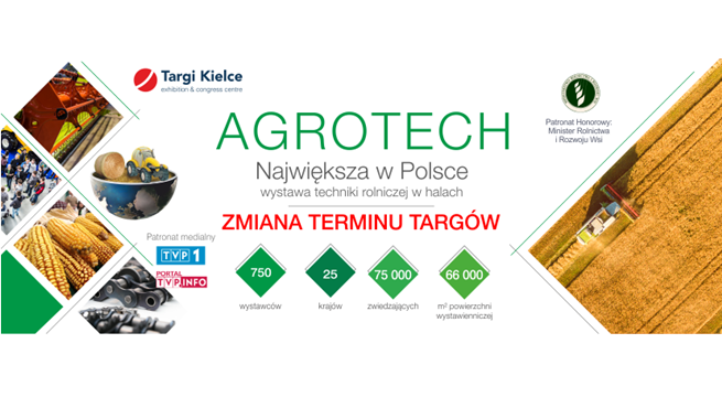 Nowy termin targów AGROTECH planowany jest na czerwiec 2020 roku. Dołożymy wszelkich starań, aby wystawa była równie atrakcyjna jak dotychczas.